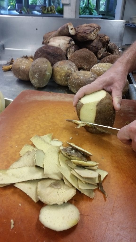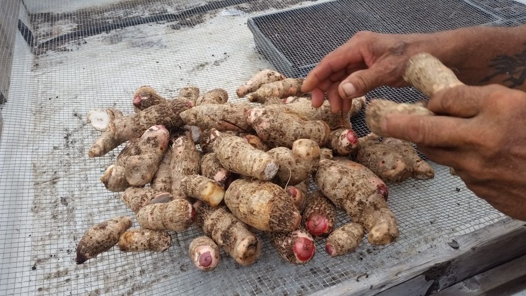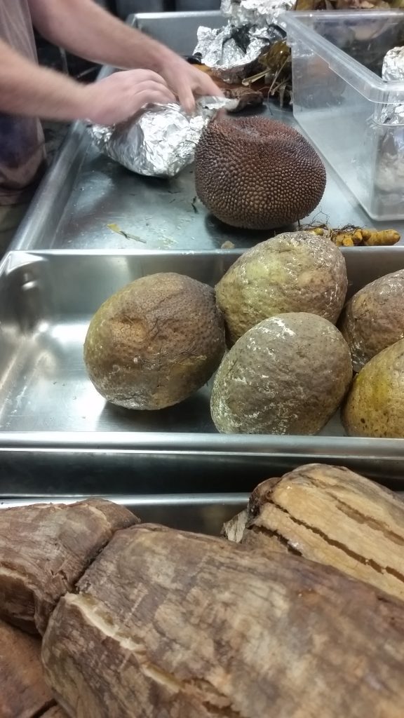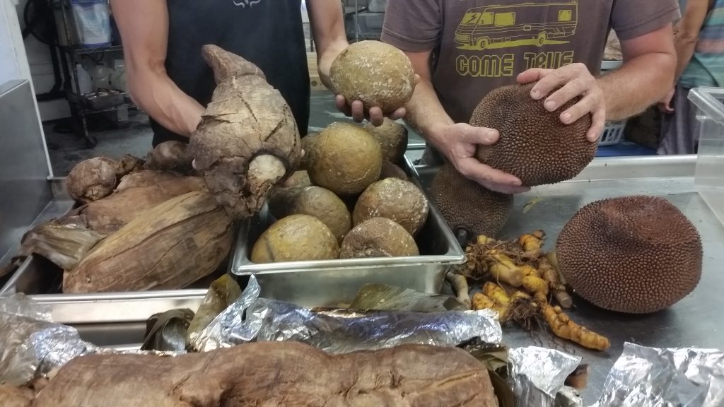 Taro, Cassava, Ulu, Turmeric imu roasted, cooked in garlic and cream sauce