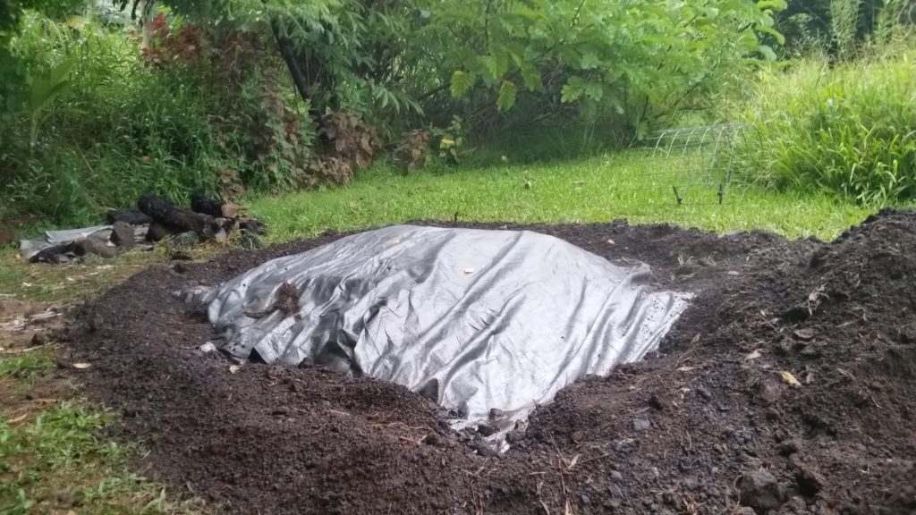 A final layer of soil is placed over the entire imu to contain the heat and moisture.