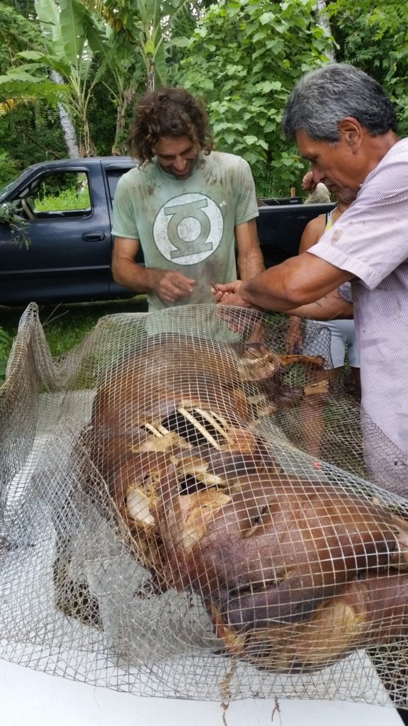 BOAR CAPTURING: With so much land that produces an abundant variety of continuous jungle food, boars are a common sight. These feral pigs have a big impact to our jungle forest ecosystem. “For the Hawaiian Island and its rain forest, feral pigs are an invasive species because they eat massive vegetation causing native plant extinction, as well as soil erosion and soil compaction in their tracks.” (Restoration and Reclamation Review). You can read more about this issue in Hawaii ~ LINKED HERE ~
