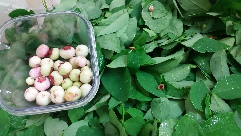 We are fans of the Katuk plant. Katuk is a perennial, tropical bush with edible leaves. We enjoy coinciding with this plant for its flavor, nutritional value, and minimal energy input requirements. Katuk is also extremely abundant with it’s yield. We harvest the green leaves and fruits for consumption. Propagating the stems after the harvest achieves no waste while simultaneously facilitating a sustainable and holistic food supply.